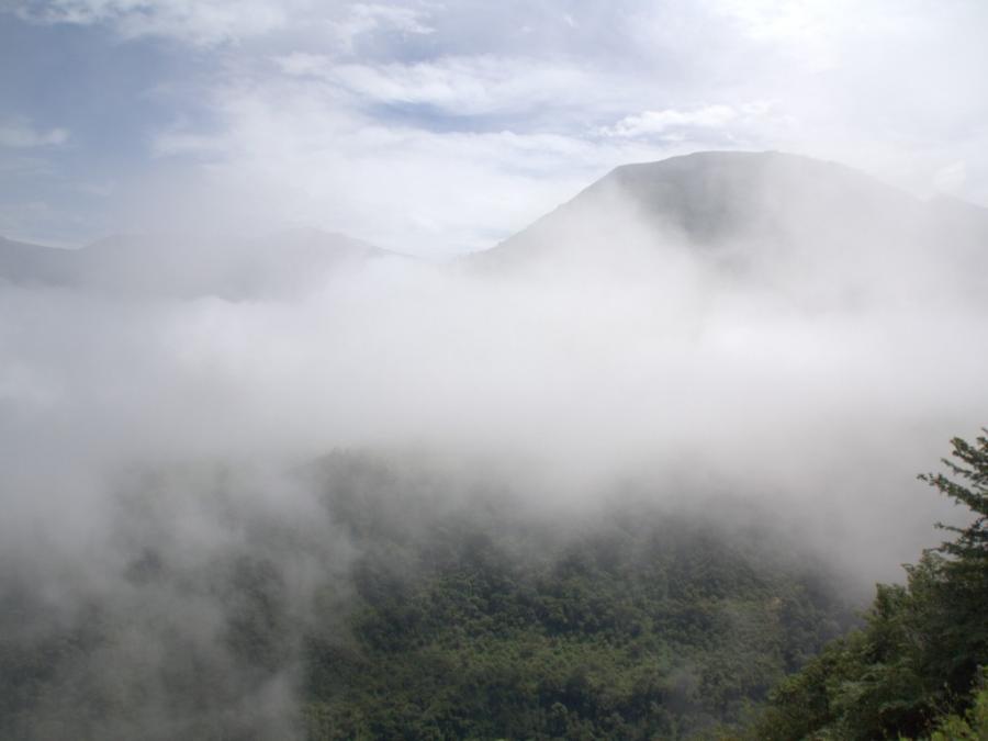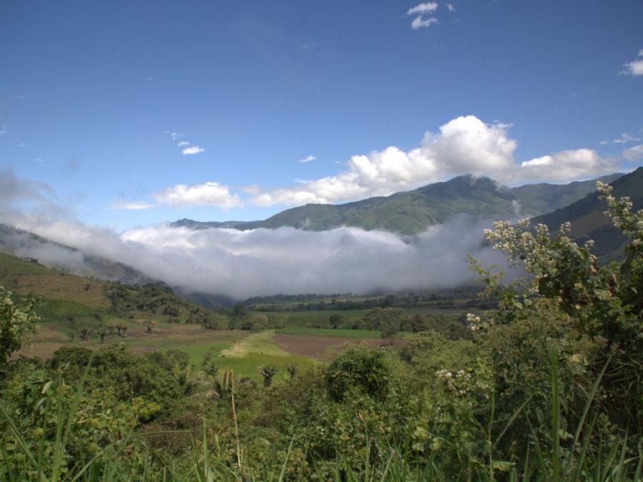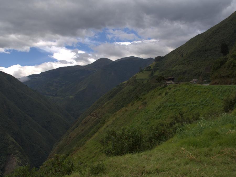 Die Straßen in Ecuador sind prima, es gibt sogar Hinweisschilder, die Landschaft mit ihren tief eingeschnittenen Tälern und dem satten Grün gefällt. Und Kurven gibt es auch reichlich. Wolken schaffen immer wieder eine beinahe mystische Atmosphäre