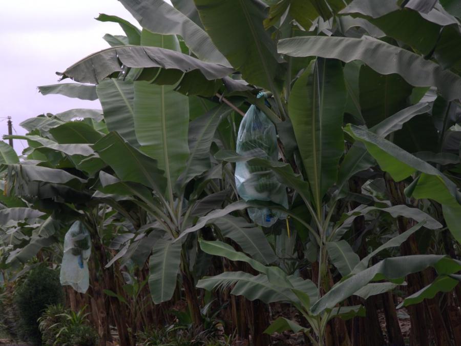 Den Weg in die Berge säumen Bananenplantagen. Praktisch, dass die Stauden gleich in Plastiktüten wachsen