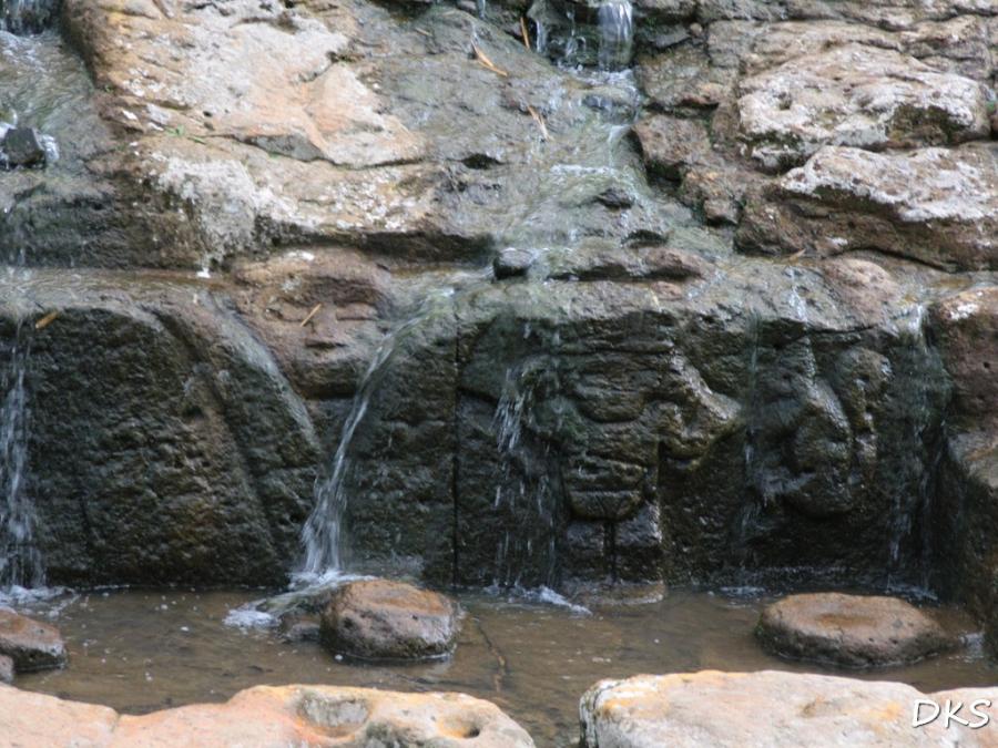 Ein Wegweiser führt mich zur Fuente de Lavapatas, zum Fußwaschbecken. Keine Quelle, wie ich vermutet hatte, auch kein richtiges Becken. Der Fluß wurde über viele kleine Steinstufen geleitet, manche dieser Steine kunstvoll gestaltet. Die Figuren auch heute, nach Jahrhunderten, noch deutlich zu erkennen: