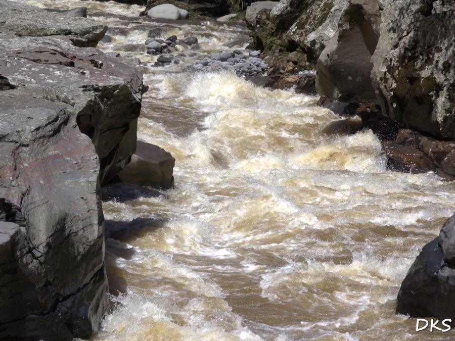 Keine zwei Meter breit ist die Spalte, durch die sich das Wasser Bahn bricht. Es zischt, es gurgelt, es tost!