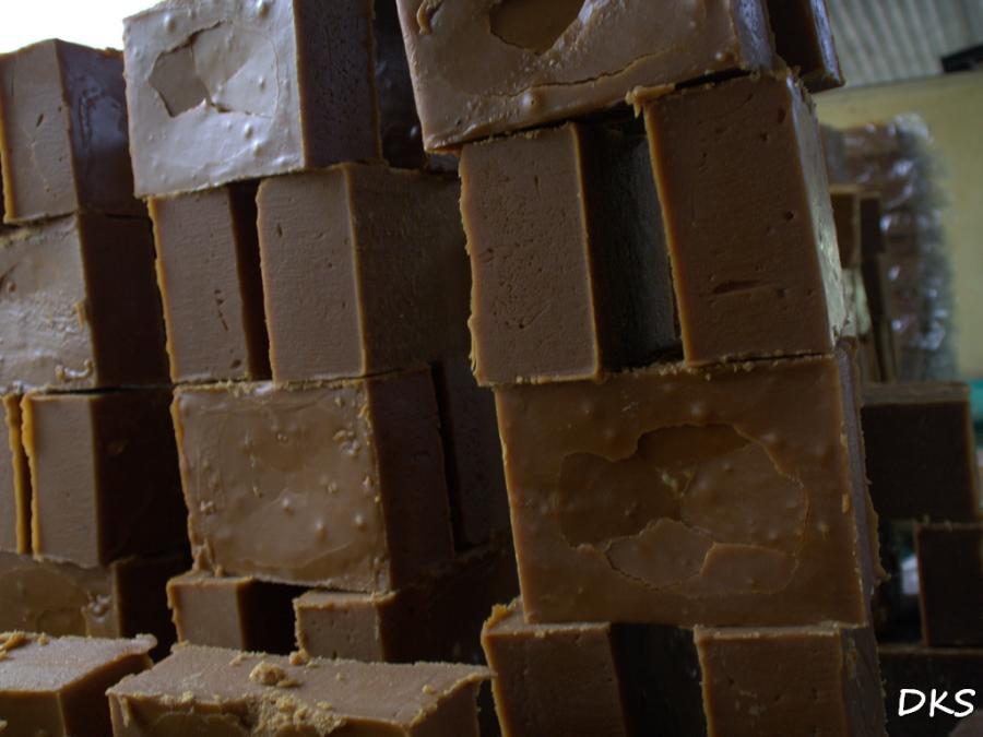 Und am Ende wird die Karamell-Masse dann in Blöcke gegossen: