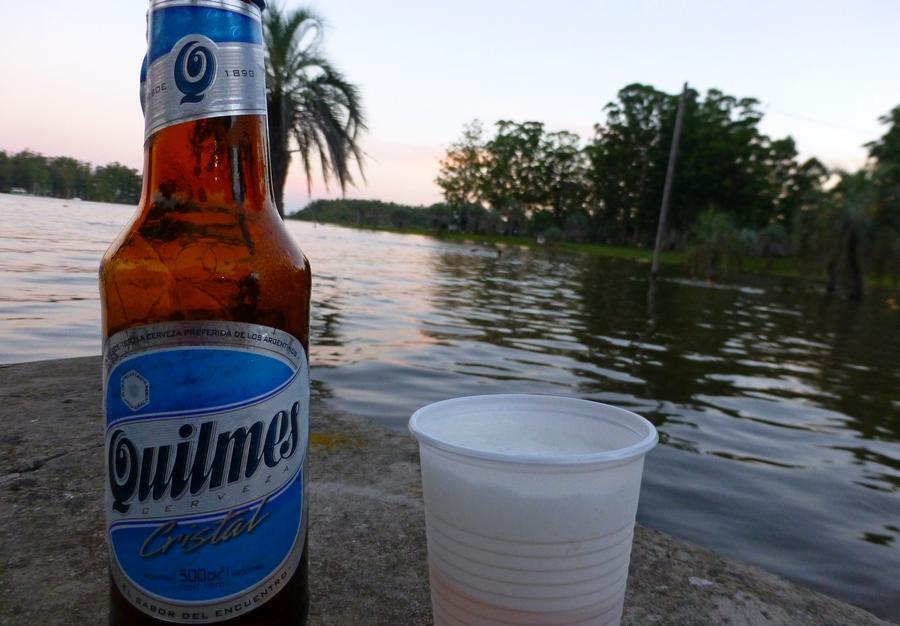 Ich übernachte wieder auf dem Campingplatz in Salto Grande, wo ich schon im Oktober war. Gleich an der Einfahrt ein Kassenhäuschen. Ich kann mir einen Platz aussuchen – wo ich will, verstehe ich. 8 Pesos bezahl ich. Aber wenn muchachos kommen, sind 30 Pesos fällig. Ne ne ne, da kommen keine muchachos. Auch nicht für 30 Pesos, so etwa 6 €. Ich bin allein in meinem Zelt, und das ist auch gut so. Der Platz hat sich verändert. Im Oktober war ich der einzige Gast, wo mein Zelt stand, liegen Tretboote. Wo nur Stille über dem See lag, dröhnt heut Musik. Ich hol mir ein Bier – und werde wiedererkannt: