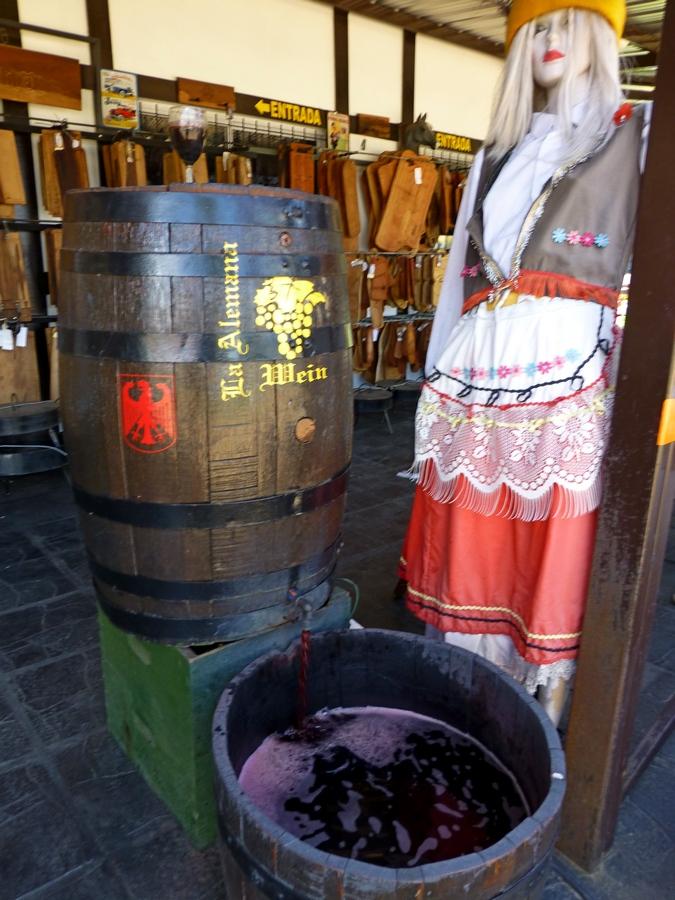 Draußen ein Brunnen mit Bier, einer mit Wein. Drinnen Lederwaren, Mates,